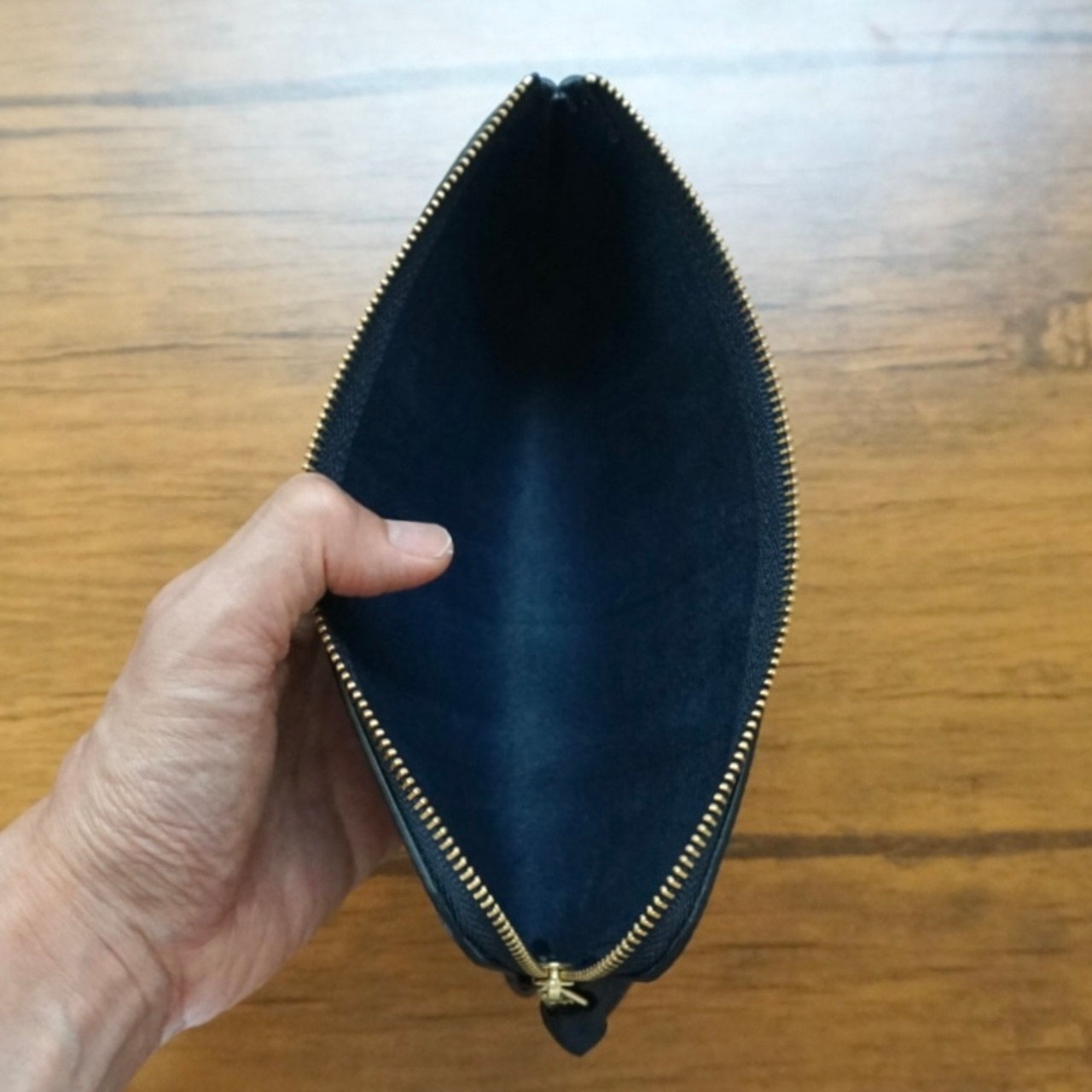 素材は【Bonita(ボニータ)】という高級クロム革で、柔らかく繊細なシボが入った、名前の通り「美しい」品のあるネイビーの革です。