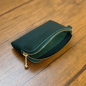 大きさは名刺よりひと回りほど大きいサイズです。 ファスナーはゴールドの玉付きファスナーで、片側が真ん中あたりまで開きますので中身の出し入れがしやすくなっています。