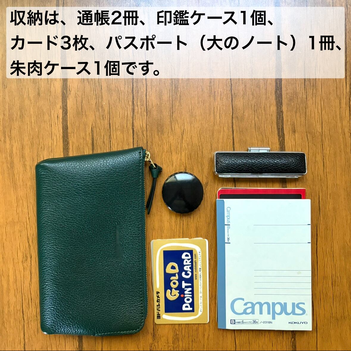 収納量(目安)は、通帳が2〜3冊、パスポート1冊、カード3〜4枚、印鑑ケース1個となります。