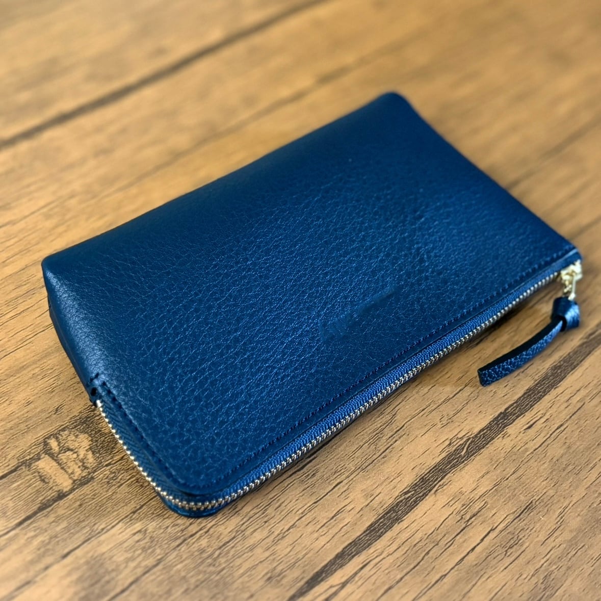 通帳ケース 通帳ポーチ【スリムポケット(カード3〜4枚)】本革 ネイビー