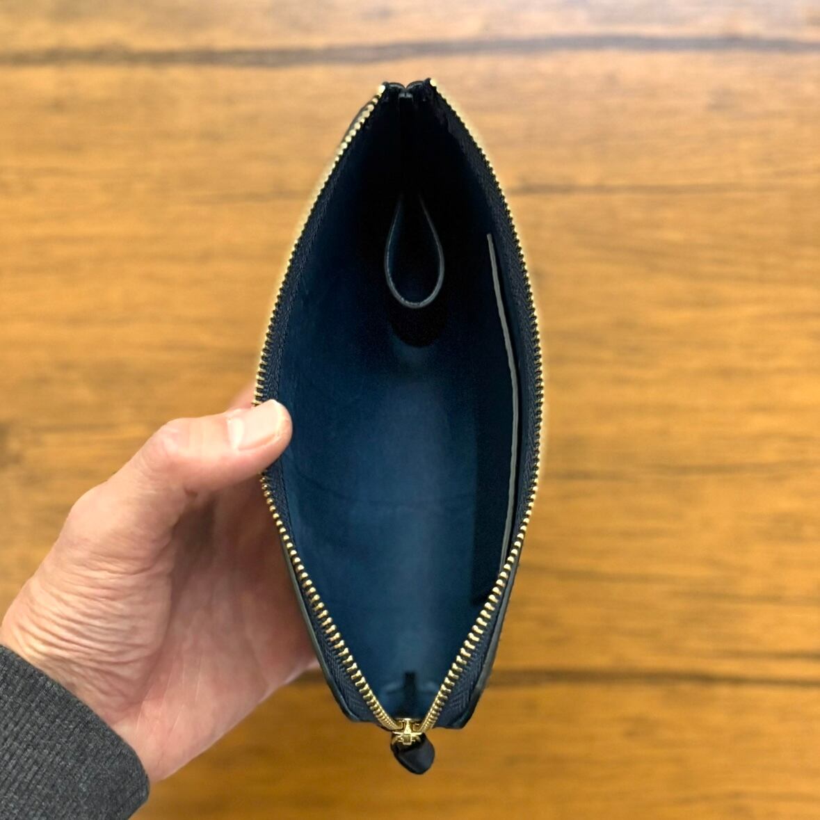 素材は【Bonita(ボニータ)】という高級クロム革で、柔らかく繊細なシボが入った、名前の通り「美しい」品のあるネイビーの革です。